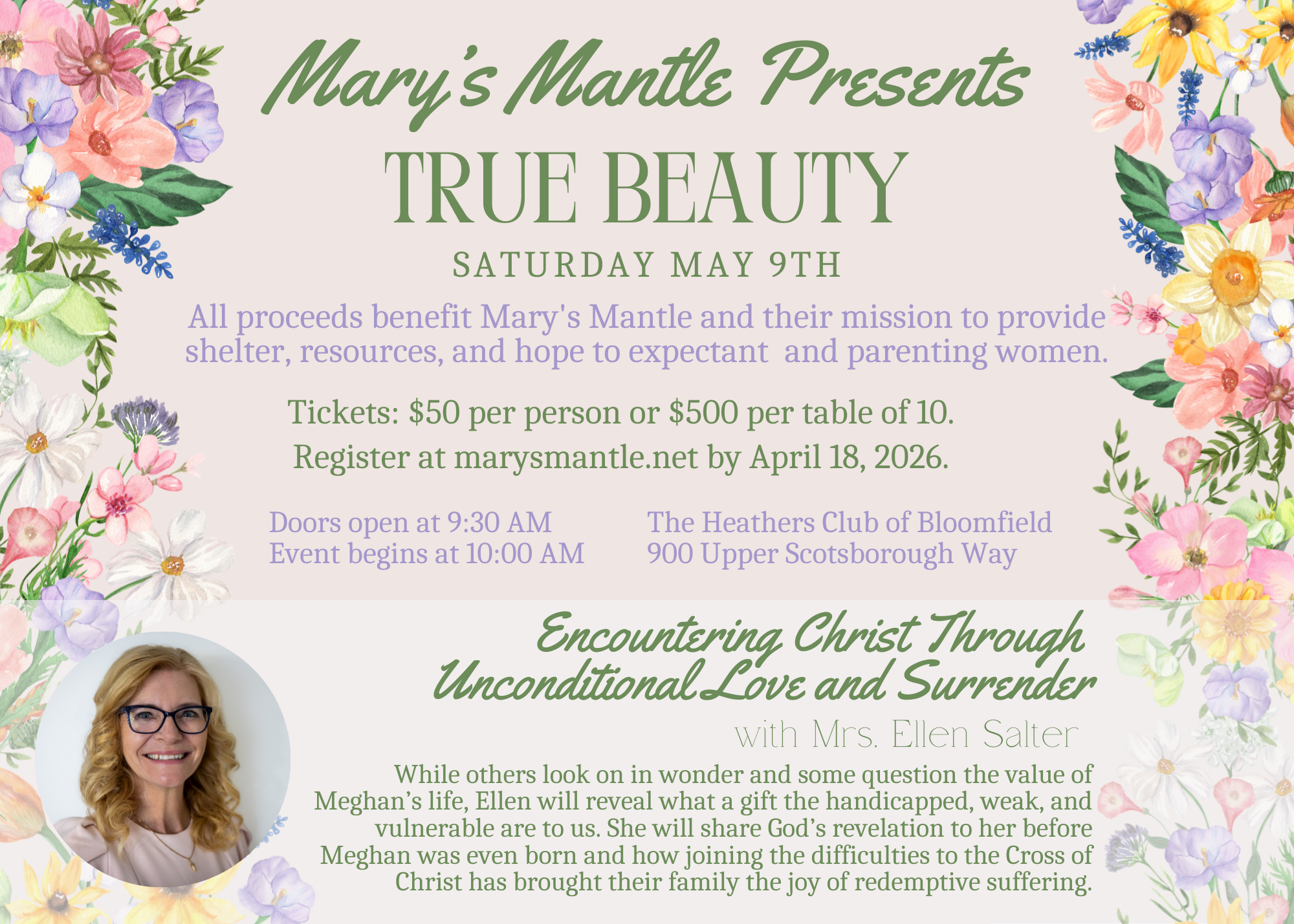 We are excited and grateful to be hosting another True Beauty Breakfast with Mrs. Ellen Salter as our inspirational speaker! (If you can’t see the details yet, please click on the event title.)